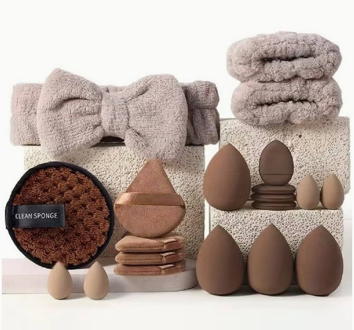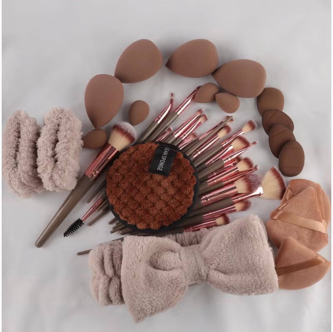 Makeup Brush Set 42Pcs Makeup Tool Set, Premium Synthetic Foundation Powder Concealers Eye Shadows Blush Makeup Brushes Powder Puff, Brown, 42 Piece Set.