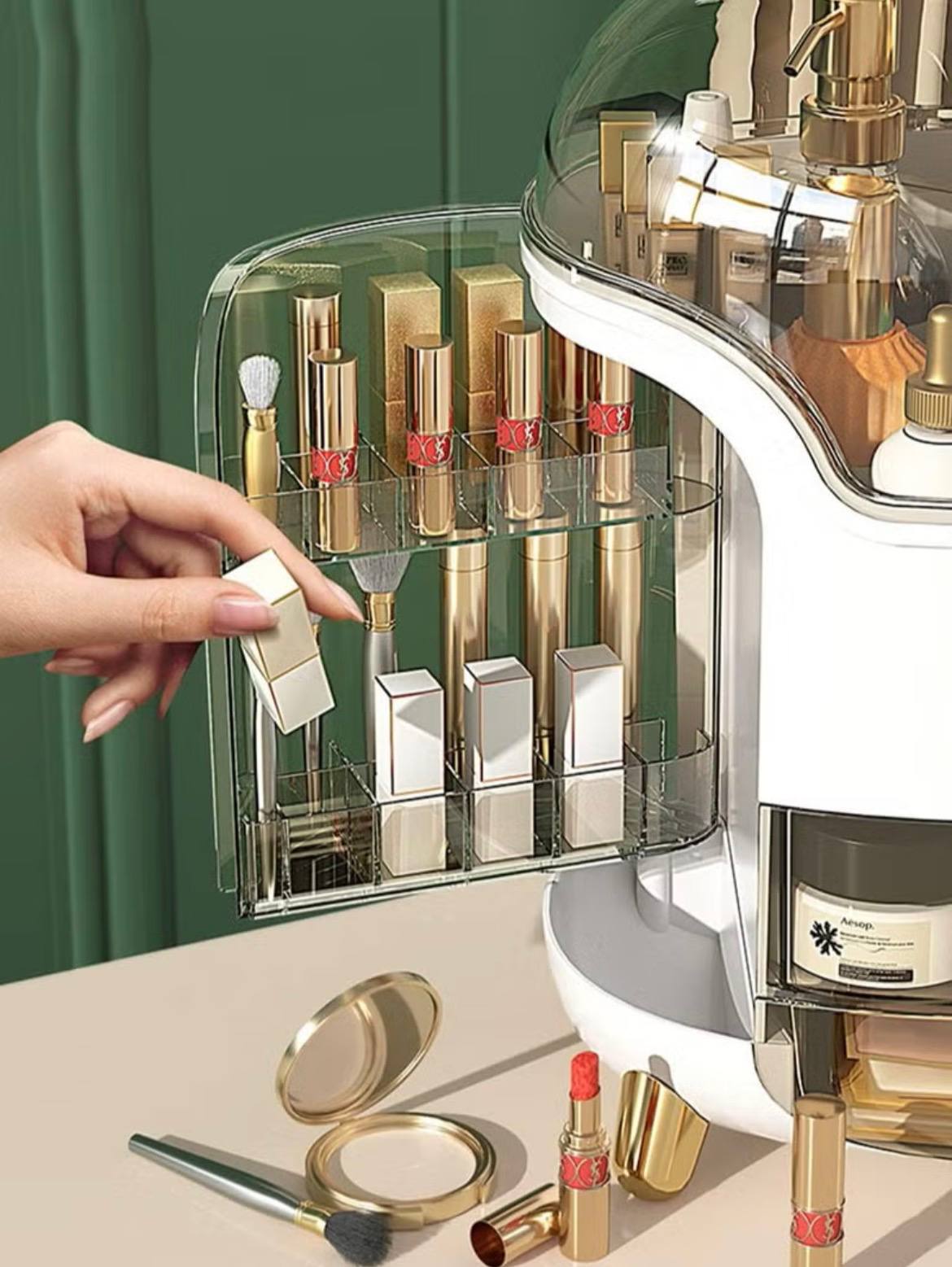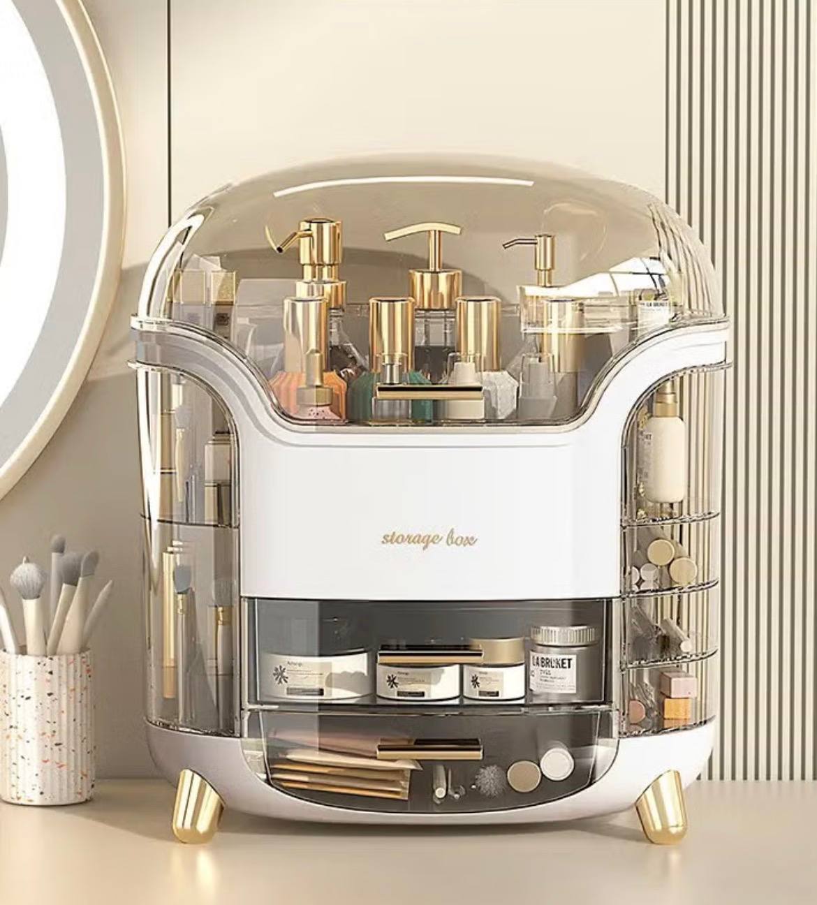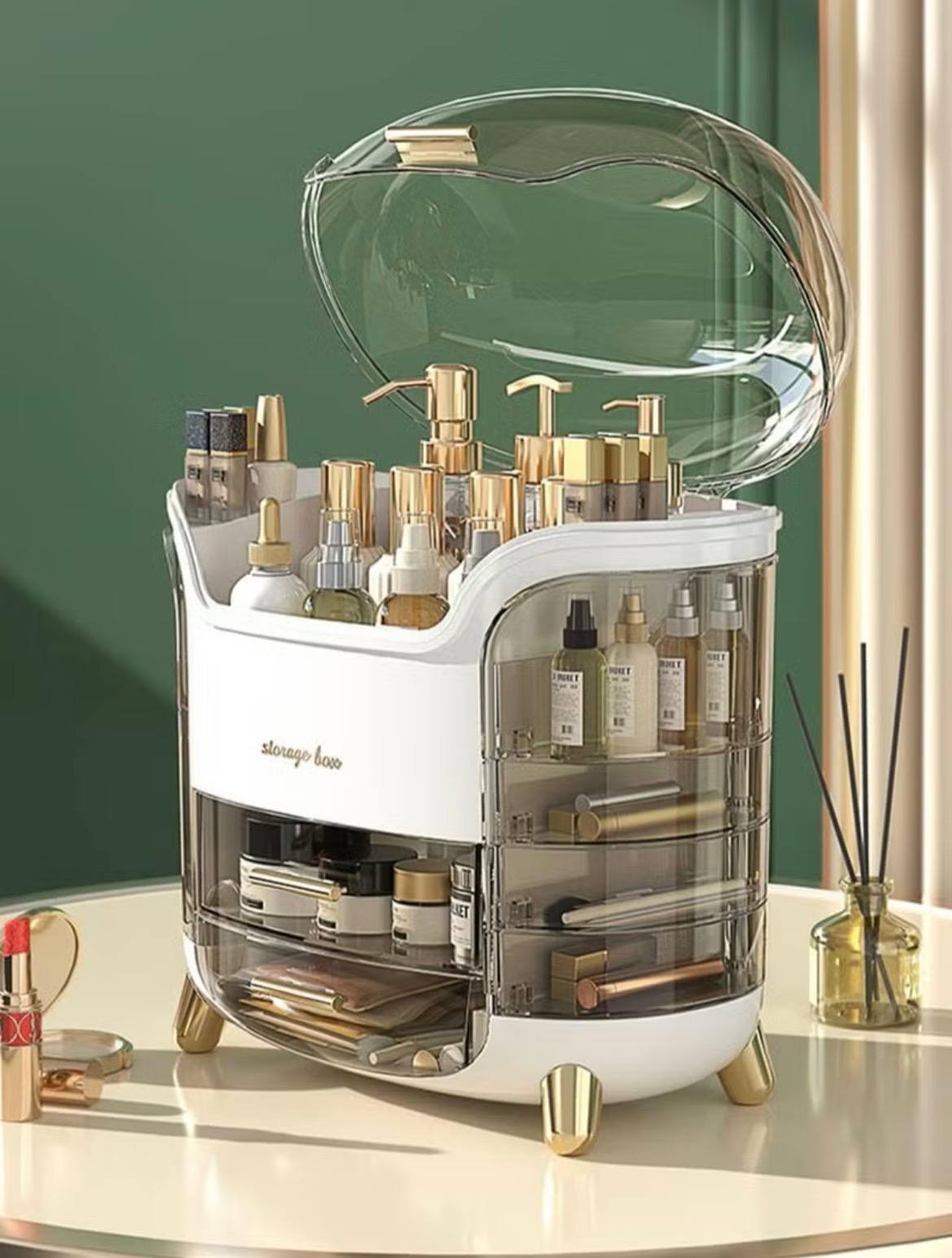 Makeup Organizer Dresser Cosmetic Storage Box PET Metal Bathroom Skin Care Product Double-Layer Rack Desktop Rack Bedroom Storage Organizer Cosmetic Display Cases 360deg Rotatable